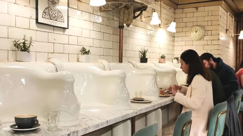 Инспирирано од emoji-културата, со столици во форма на тоалети и десерти сервирани во мини WC-шолји. Чудно? Апсолутно. Забавно? Несомнено.